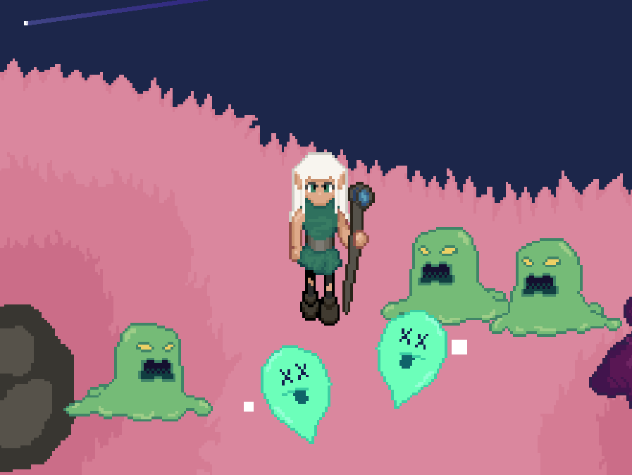 On a flying island an elf is attacked by slimes. Defeat the slimes before they defeat you! On the way - try to beat the highscore!